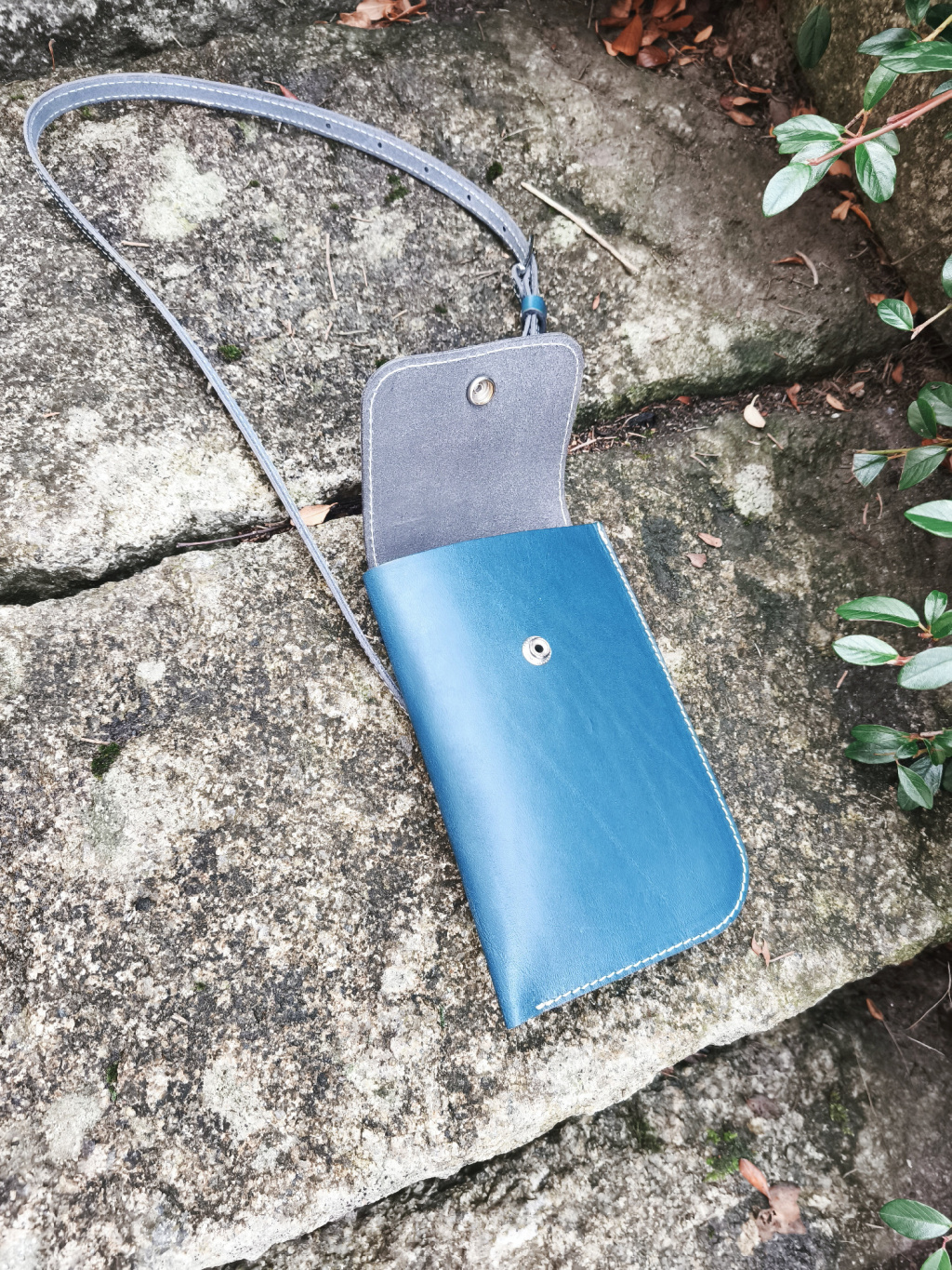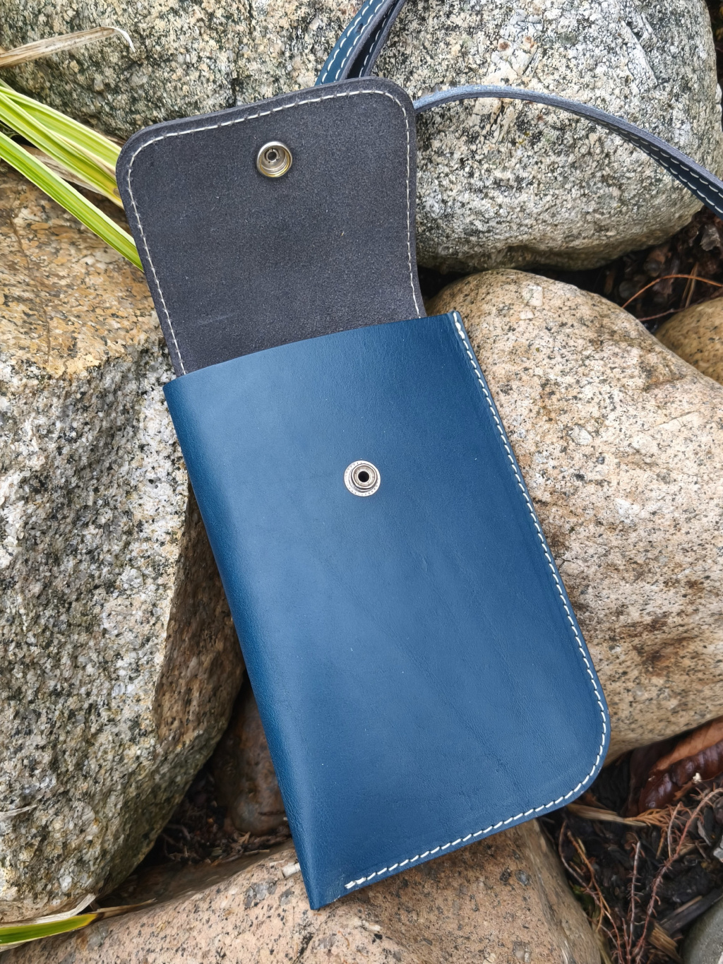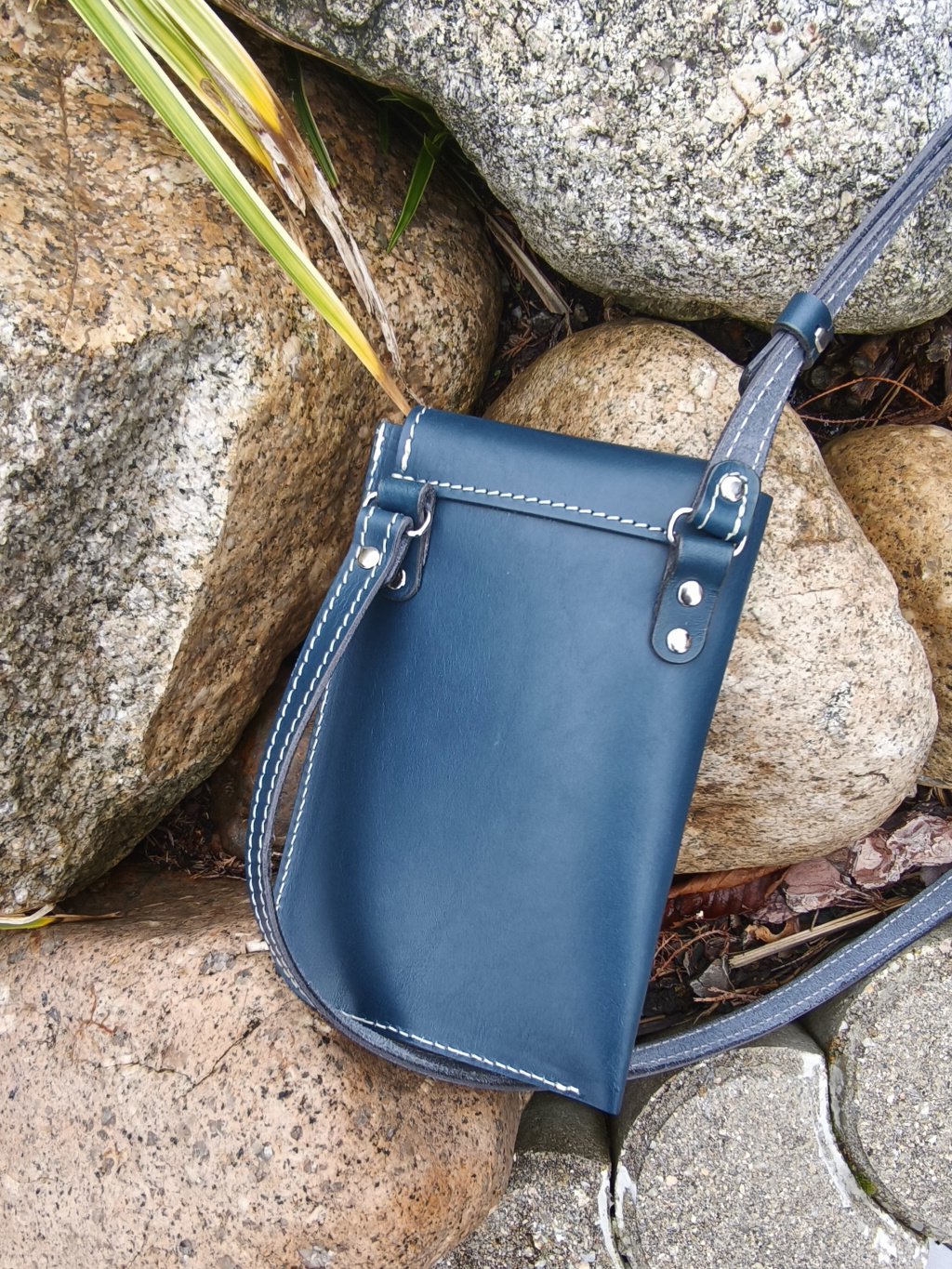 Je praktické, stylové a dokonale promyšlené do posledního detailu. Vyrobené je z italské třísločiněné kůže v odstínu modré, doplněné kontrastním přírodním prošíváním, které mu dodává charakter i řemeslný šmrnc.