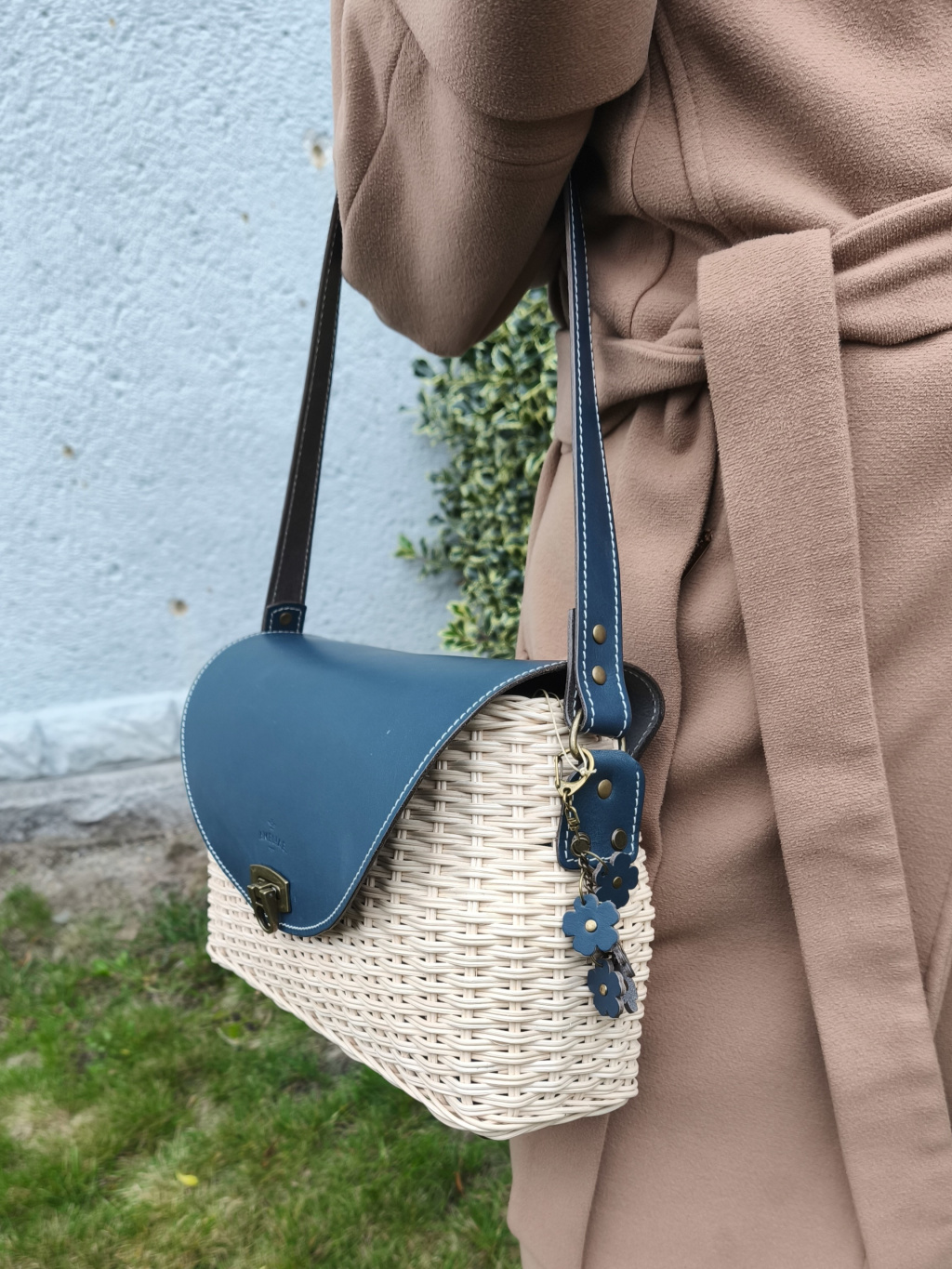 Kabelku jsem vyrobila z přírodního proutí a doplnila koženou klopou a dlouhým nastavitelným popruhem.