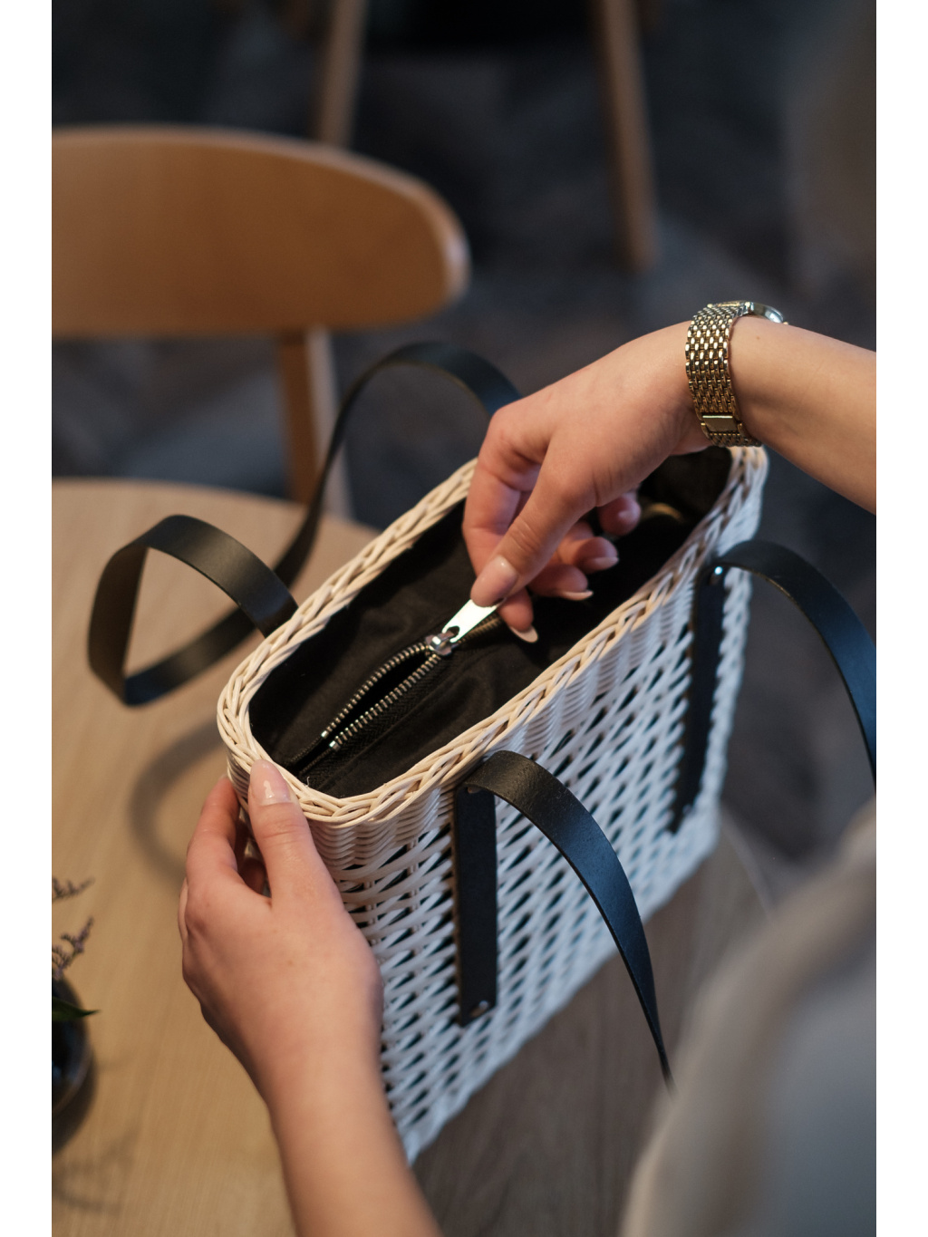 Uvnitř je podšívka se zipem, která krásně schová vnitřní nerovnosti proutí, ochrání věci uvnitř a díky zipu vám z ní nic nevypadne.