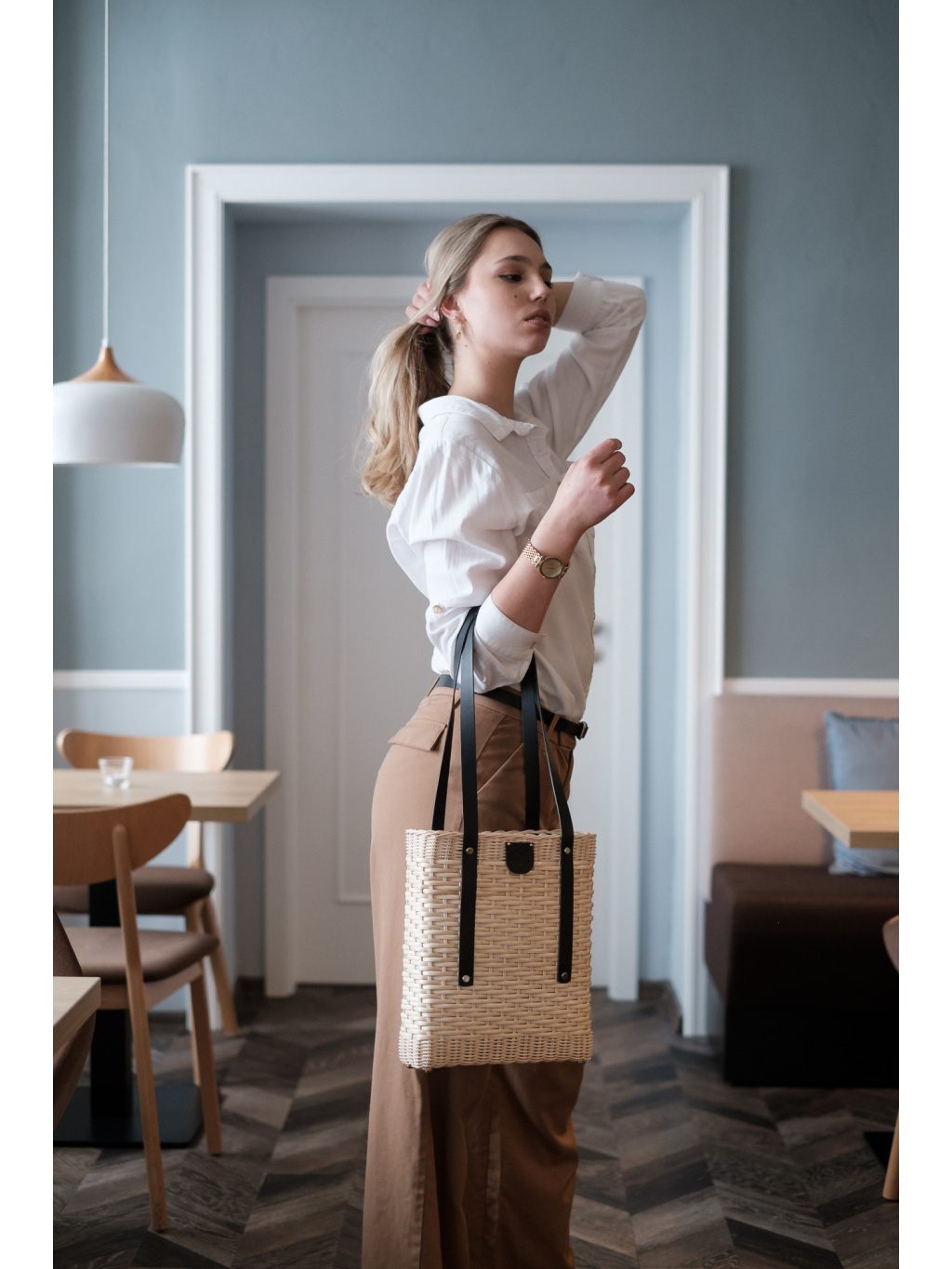 Proutěná taška Eliška je perfektní volbou pro všechny, kteří hledají stylový a praktický doplněk do svého každodenního života. Díky své velikosti, do tašky se vejde formát A4, což z ní dělá ideální volbu pro ty, kteří potřebují nosit s sebou dokumenty, knihy, nebo jiné věci ve velikosti papíru. Přírodní pedig dodává tašce příjemný a rustikální vzhled, který je v dnešní době velmi oblíbený. Tuto tašku můžete využít pro mnoho příležitostí - menší nákupy, do práce, do města, na pláž.